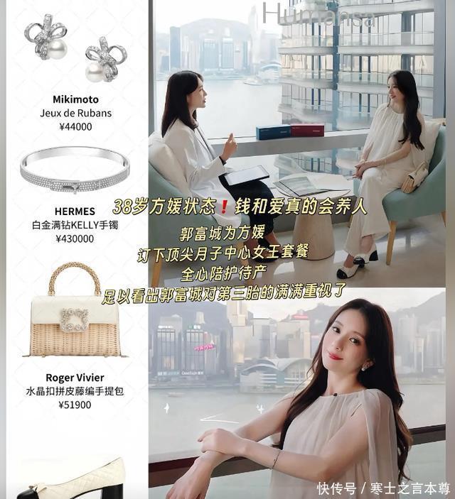 最能体现态度的就是郭富城给方媛安排的月子中心。 有知情者爆料,方媛入住的是香港顶层套房,和张檬之前坐月子的是同一家顶级机构,光是费用就是上百万。