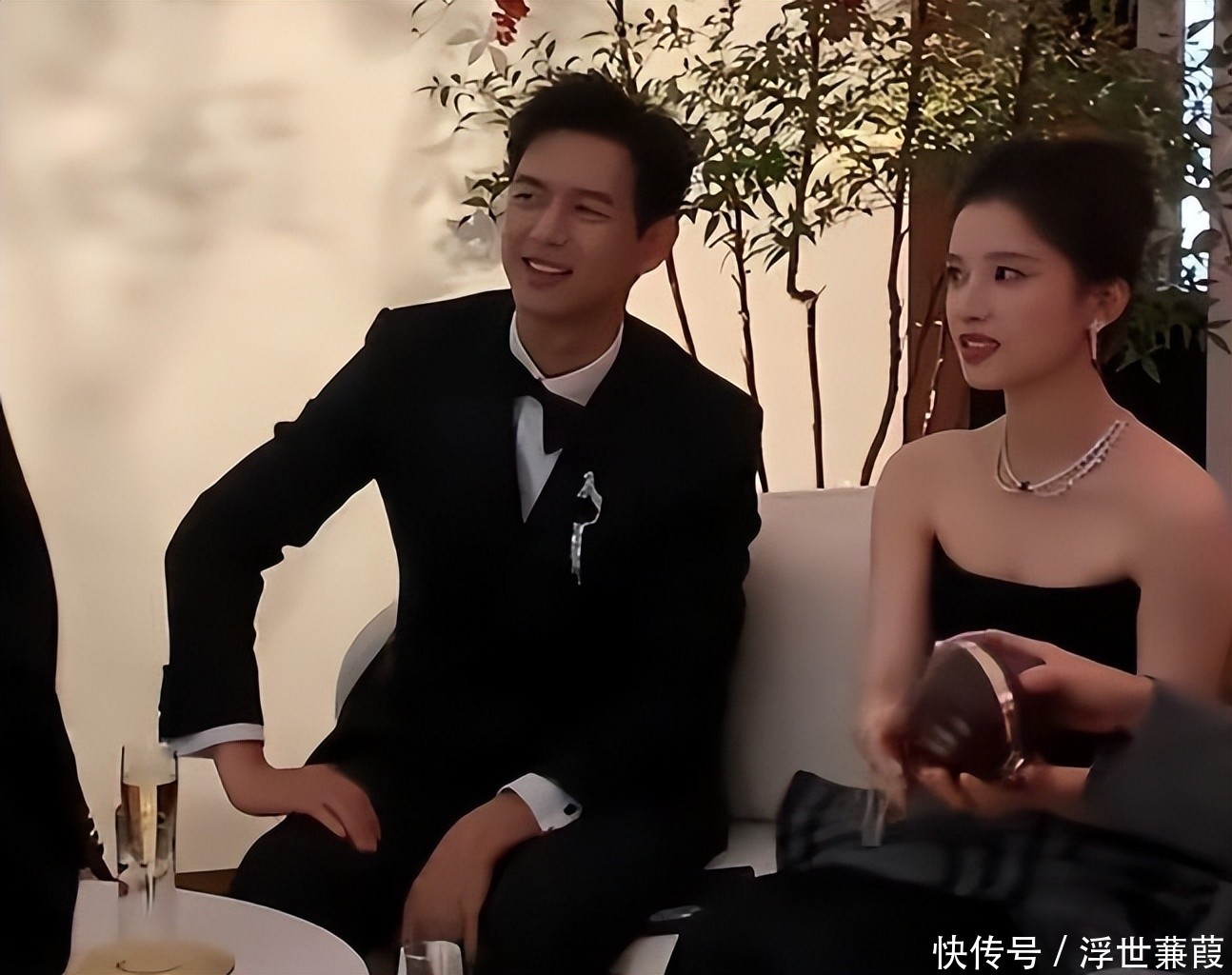 李现在狂笑过后独自倚靠沙发陷入沉默,胸前蝴蝶结胸针依旧耀眼,可周围却空无一人,热闹散去后的孤独感悄然浮现。